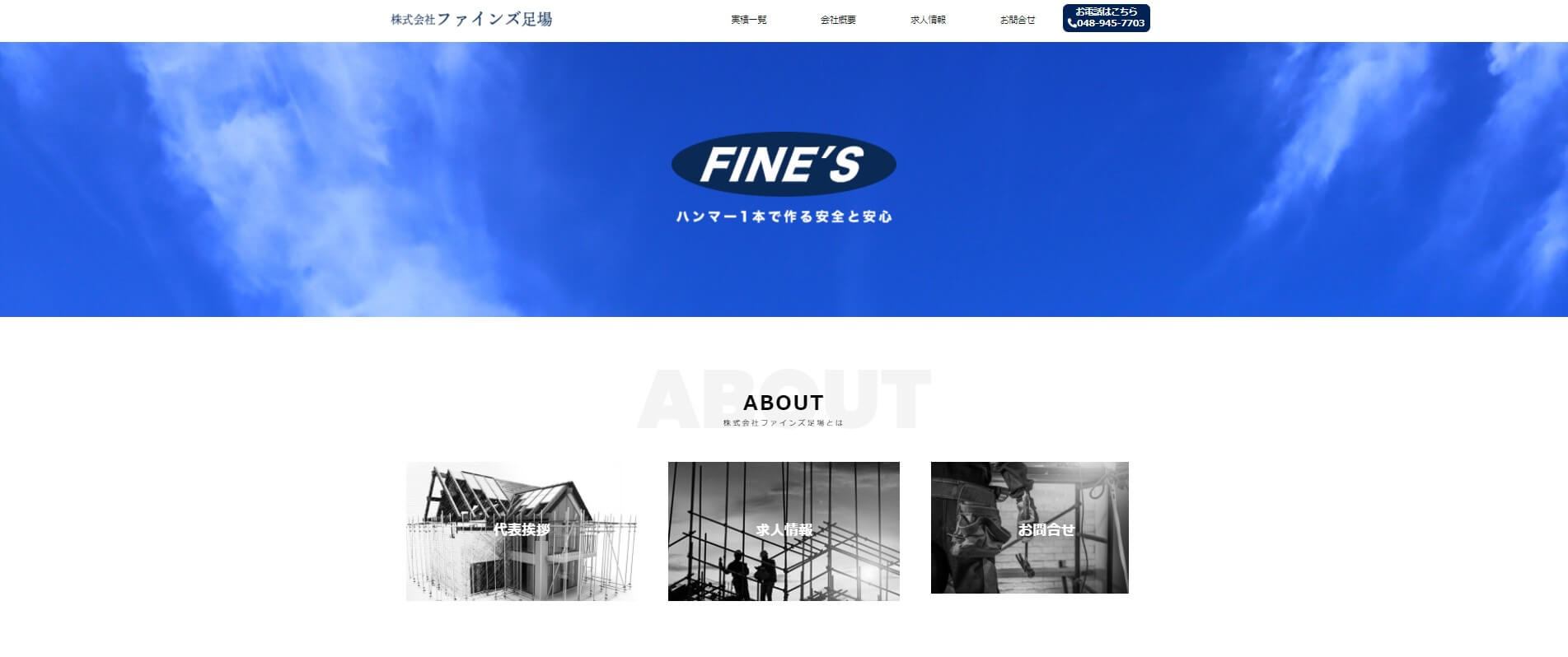 埼玉県越谷市に本社を春日部市に営業所を構え、埼玉県内を中心にクサビ式足場工事を行っているファインズ足場様のホームページを制作させて頂きました。